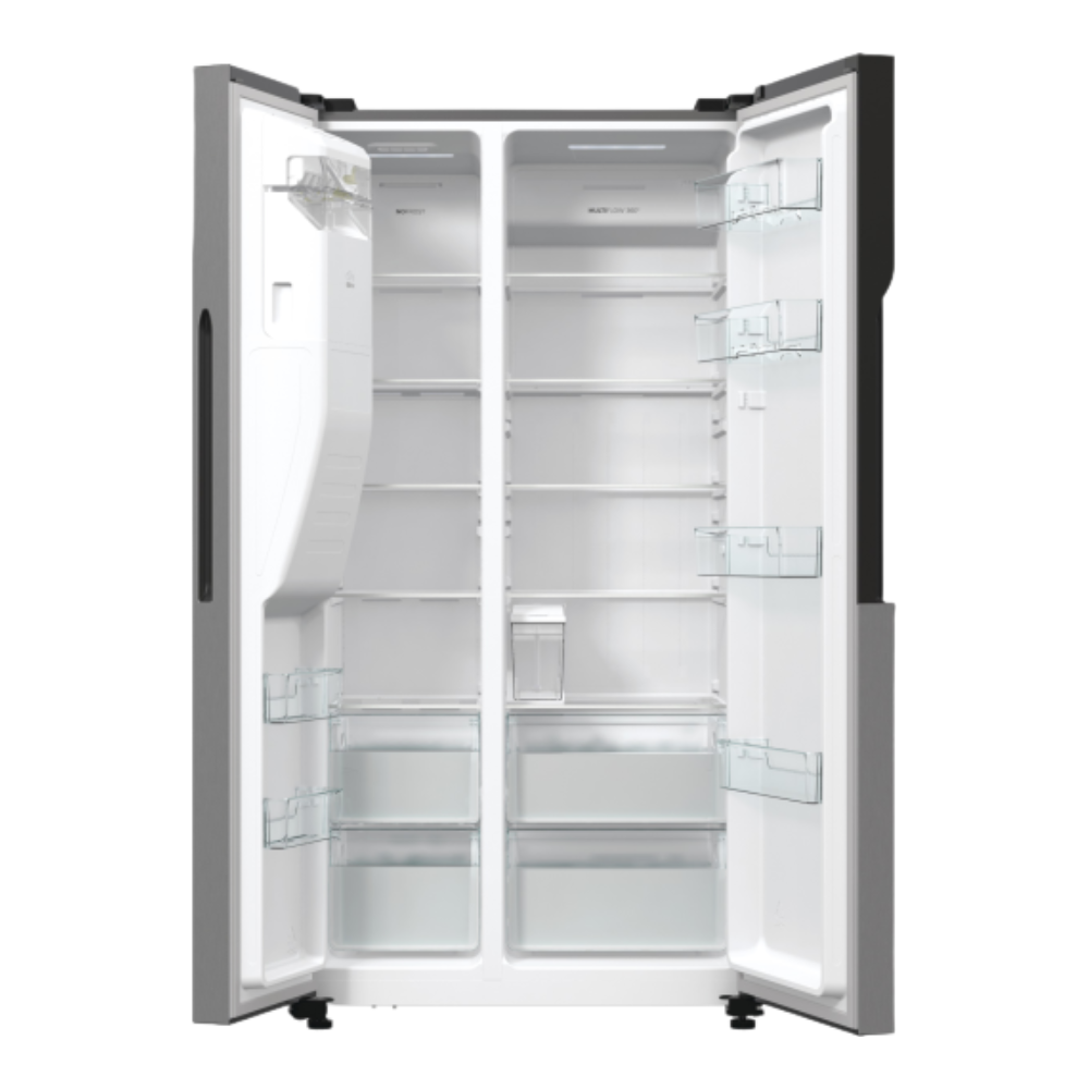 Gorenje NRR9185ESXL Side-by-Side hladnjak dizajniran je za moderna kućanstva koja trebaju veliki prostor za pohranu hrane, napredne tehnologije hlađenja i elegantan izgled. S ukupnim kapacitetom od 566 litara, ovaj hladnjak nudi dovoljno prostora za svježe namirnice, zamrznutu hranu i napitke, što ga čini idealnim izborom za veće obitelji ili kućanstva s većim potrebama skladištenja.
